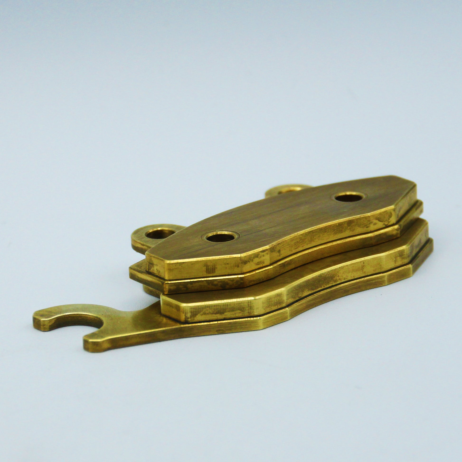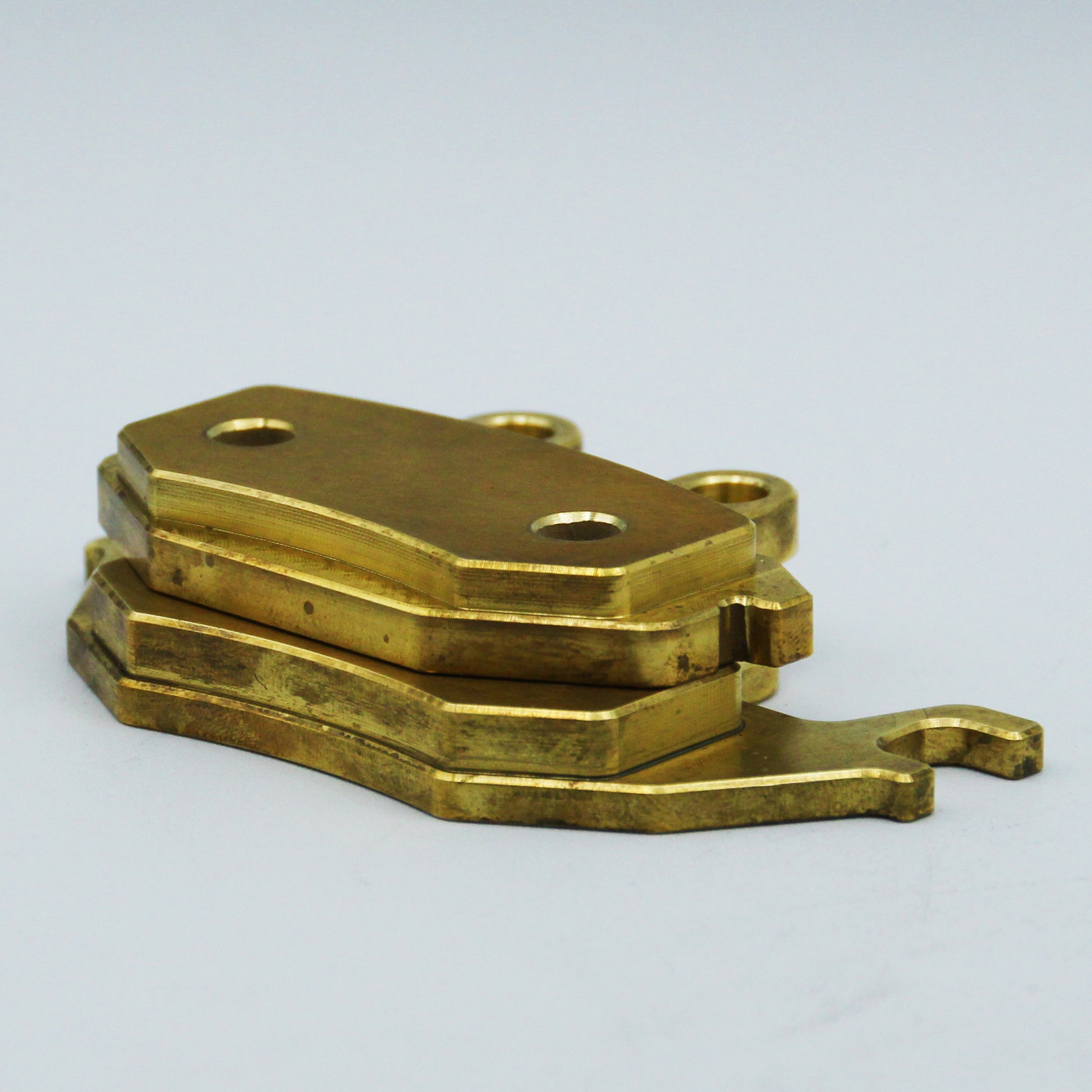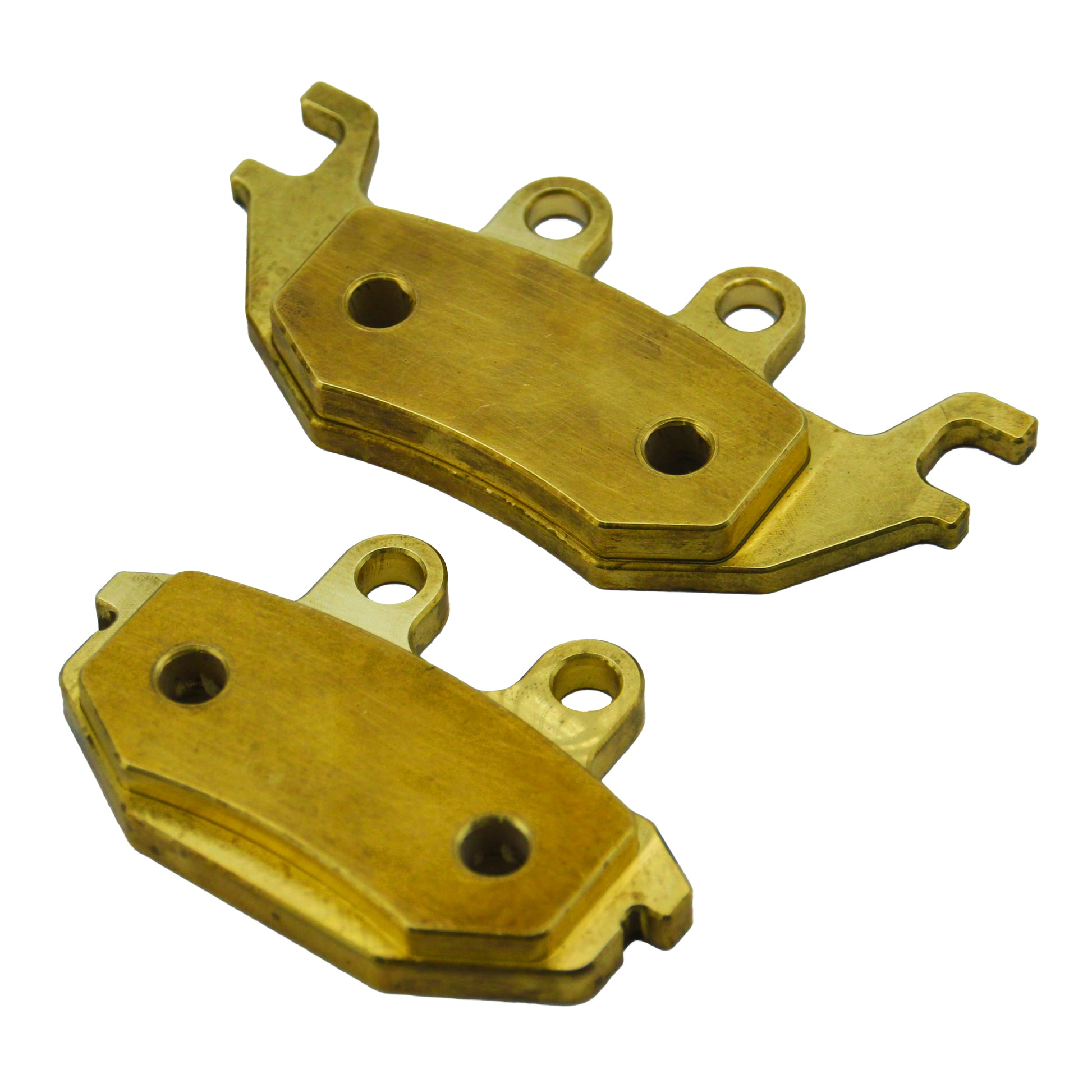 Machined in the USASingle-piece, solid brass compound, CNC machined to stock sizes for a direct fit. No modification necessary and no cut corners leaving you with less material than the original pads.
