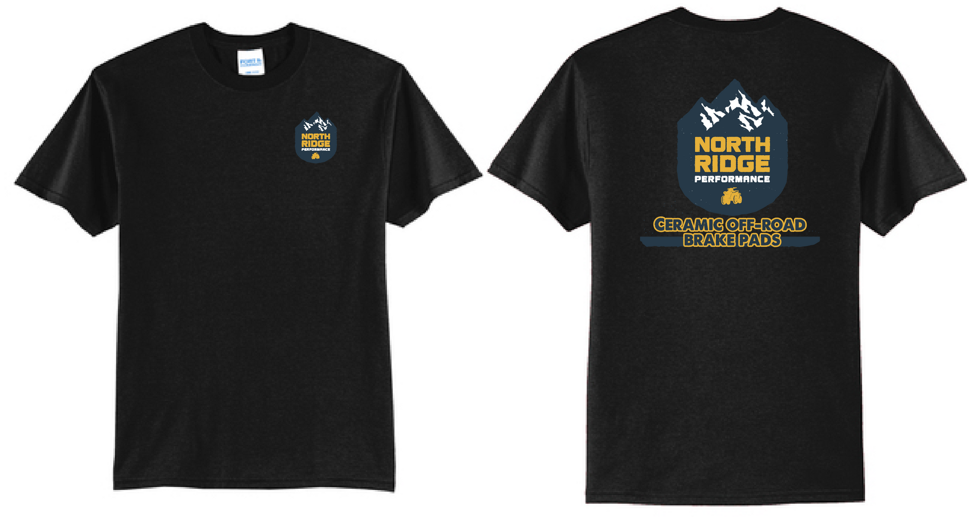 NRP T shirt with 3 color logo on front left chest and large 3 color logo on back.